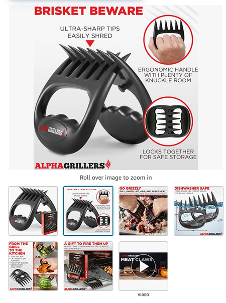 Amazon.com • 3rd April 2022 Alpha Grillers Meat Claws - Amazon Listing Alpha Grillers Meat Claws for Shredding & Meat Shredder Tool - Meat Shredder Claws & Bear Claws for Shredding Meat, Smoker Accessories for BBQ Gifts for Men & Stocking Stuffers for Men